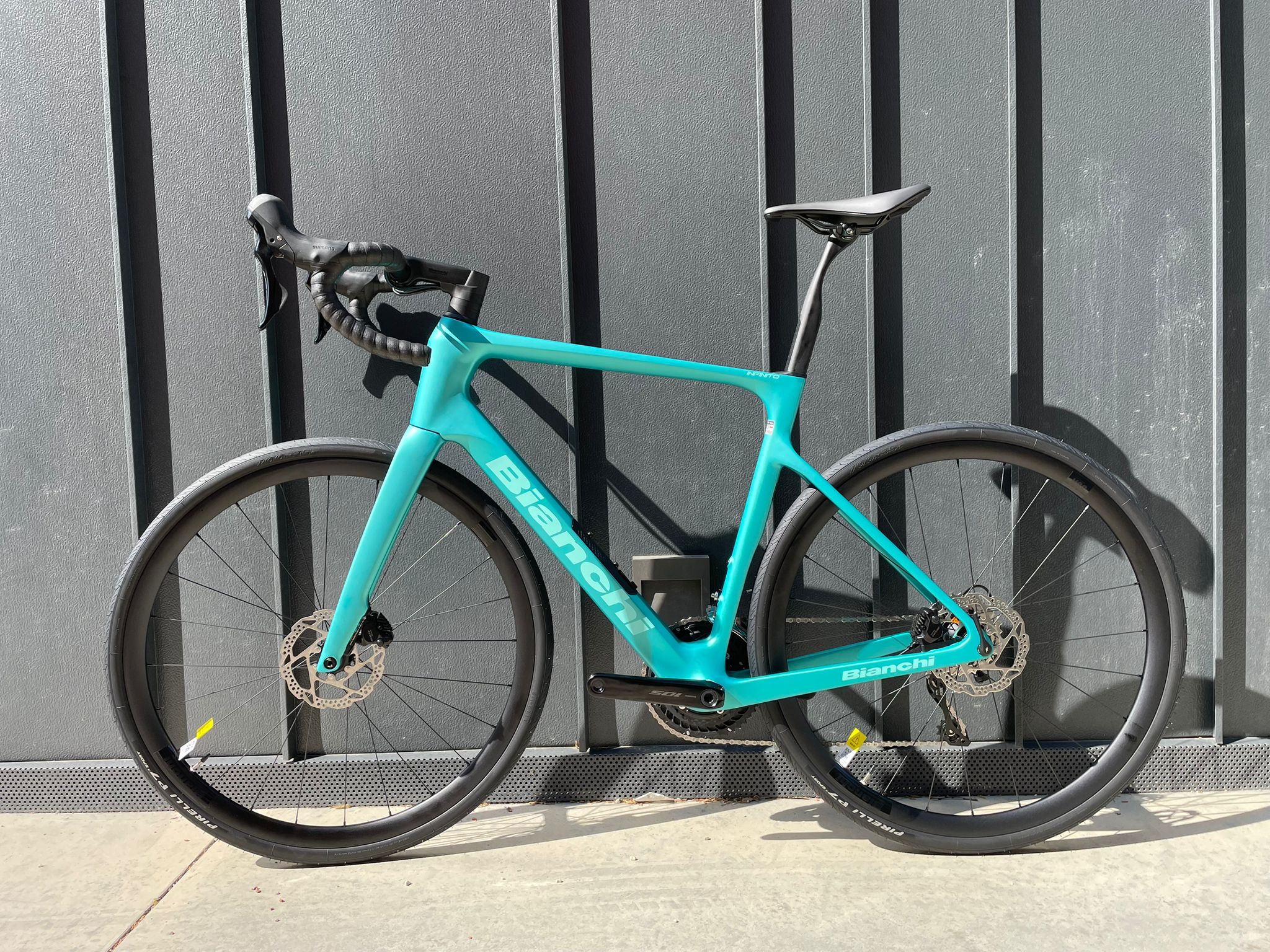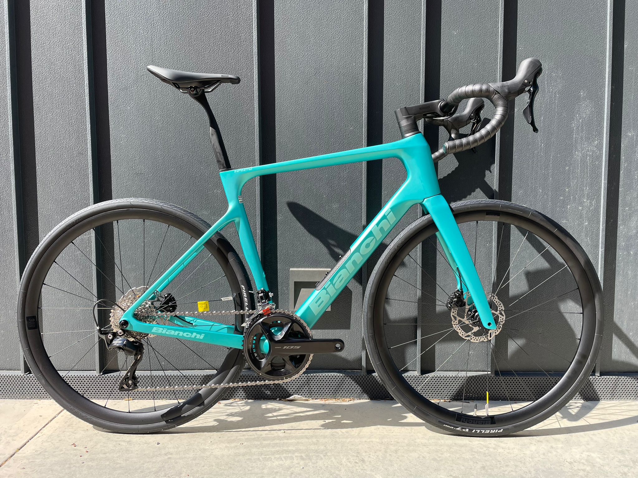 Nella magnetica colorazione Metallic Celeste, questa Infinito equipaggiata con Shimano 105 Di2 a 12 velocità offre una precisione di cambiata elettronica impeccabile e una rapportatura (11-36T) pensata per scalare qualsiasi pendenza con agilità.