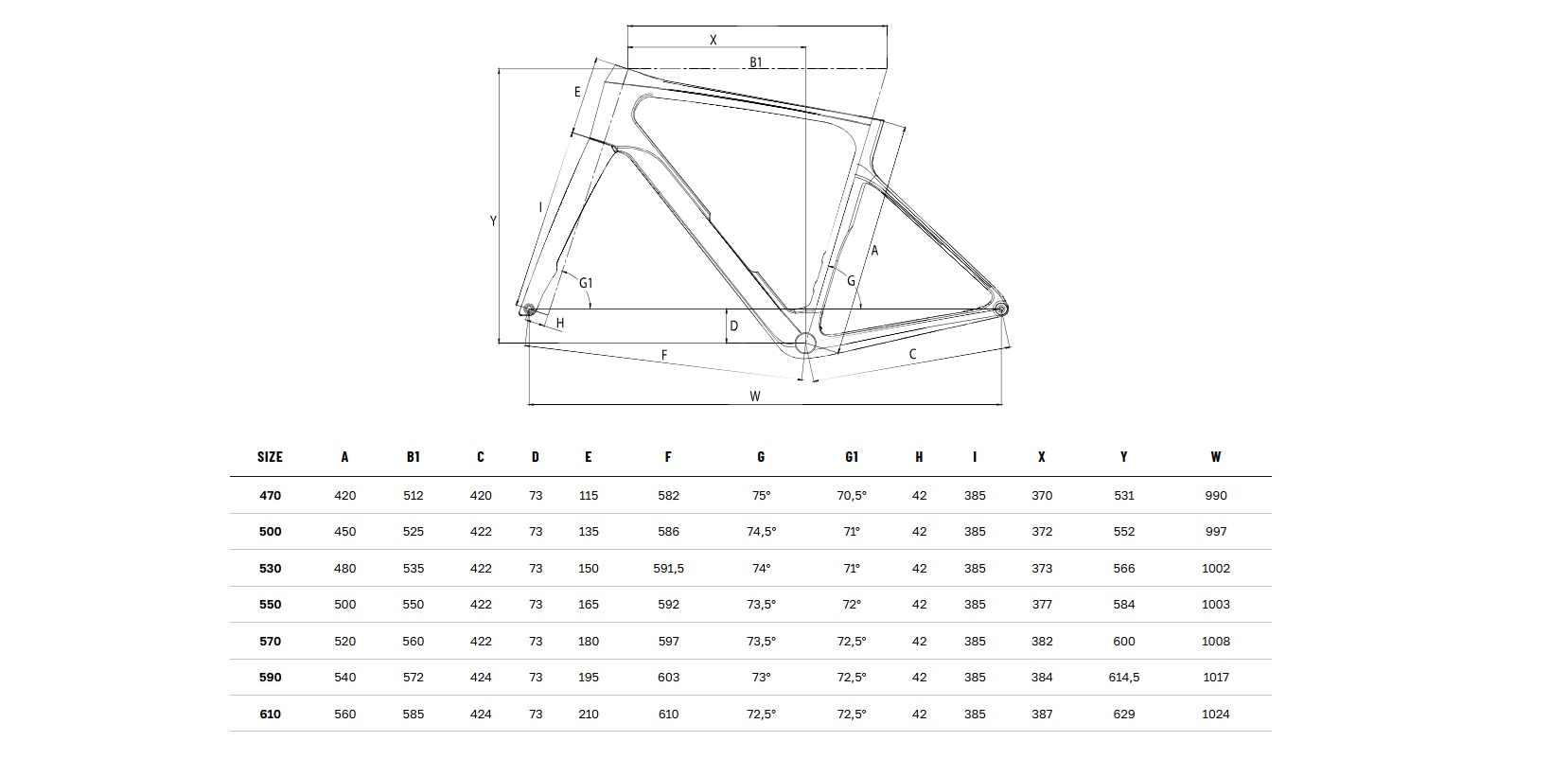 Note Geometria: La taglia 53 monta pedivelle da 170mm e attacco da 100mm per un assetto endurance perfettamente bilanciato.