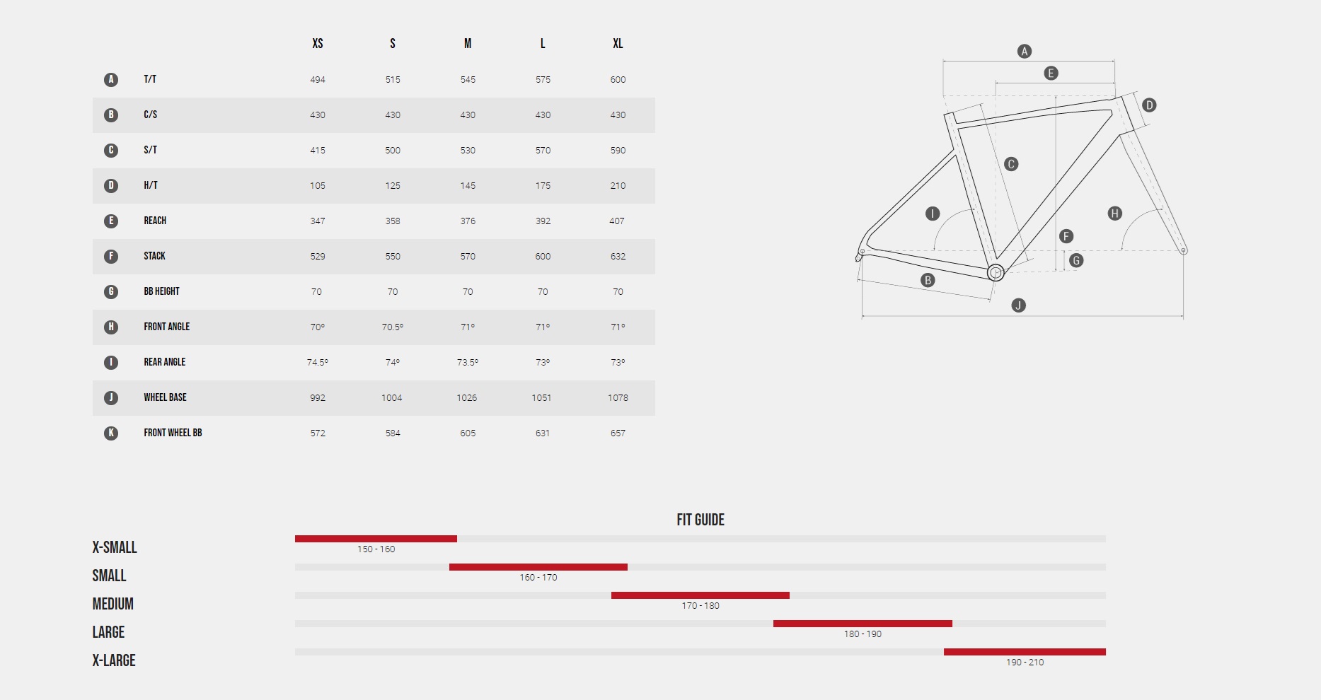 XS: 155 cm - 165 cm
